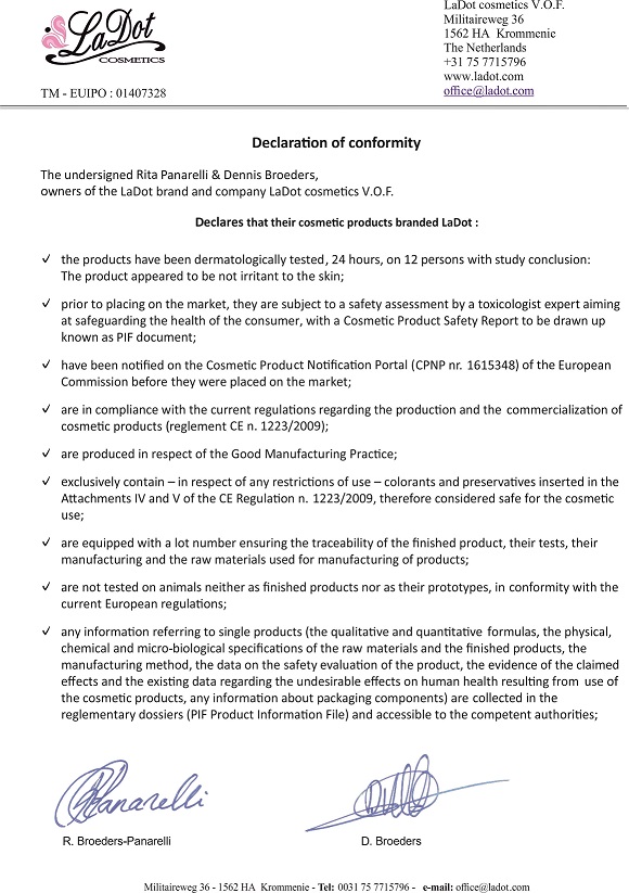 Encre testée dermatologiquement, hypoallergénique et vegan (fabriquée à base de colophane).